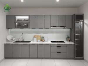 - Khả năng chống trầy xước: Kính cường lực và lớp phủ nhôm giúp tủ bếp chống lại trầy xước và va đập, giữ cho bề mặt luôn mới mẻ và dễ bảo trì.