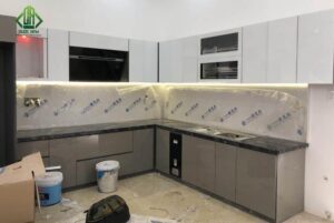 - Khung nhôm: Khung cửa tủ được làm từ nhôm cao cấp, có khả năng chống ăn mòn, không gỉ sét, và chịu được va đập mạnh. Khung nhôm mang lại sự bền bỉ, giúp tủ bếp chịu được điều kiện môi trường khắc nghiệt, đặc biệt là ở những khu vực có độ ẩm cao như nhà bếp.